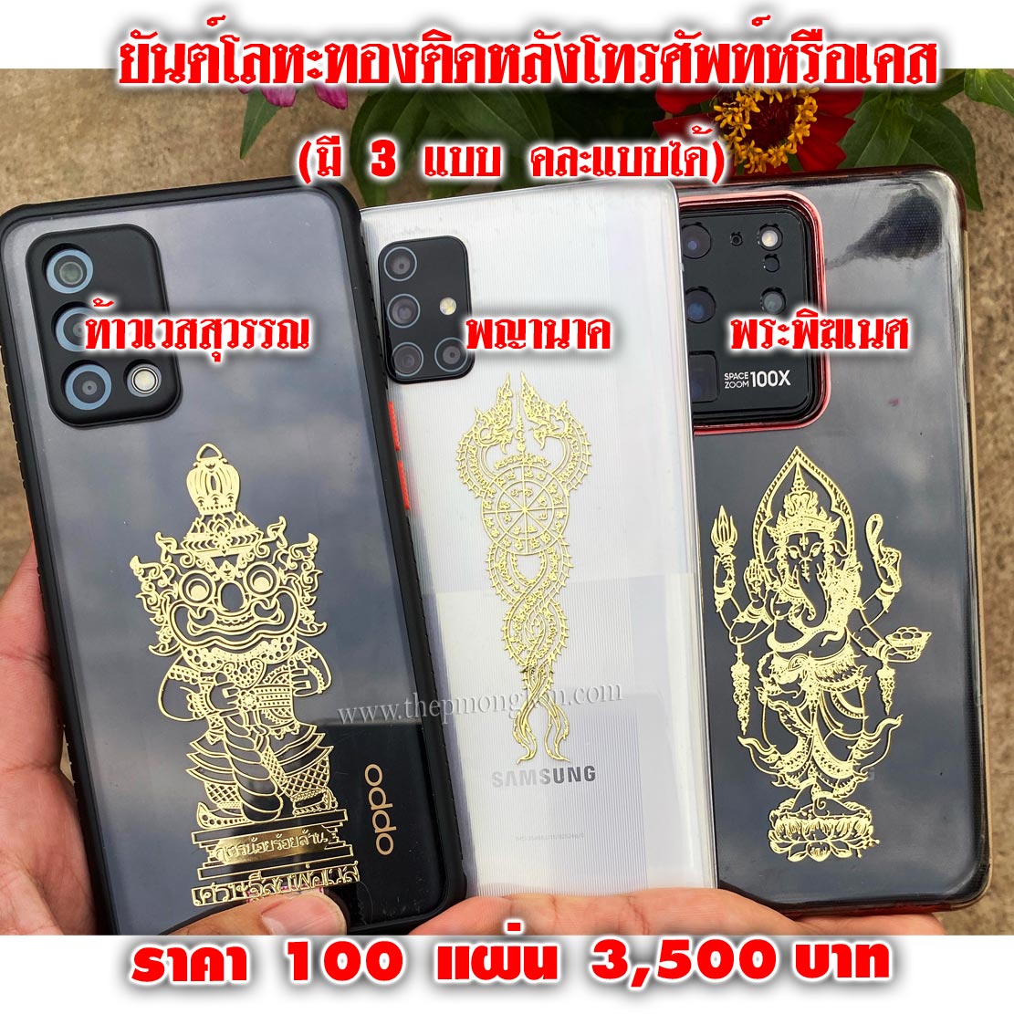 ยันต์โลหะทองติดหลังโทรศัพท์หรือเคส (จำหน่ายราคาส่งขั้นต่ำ 100 ชิ้น) 3,500 บาท เฉลี่ยชิ้นละ 35 บาท